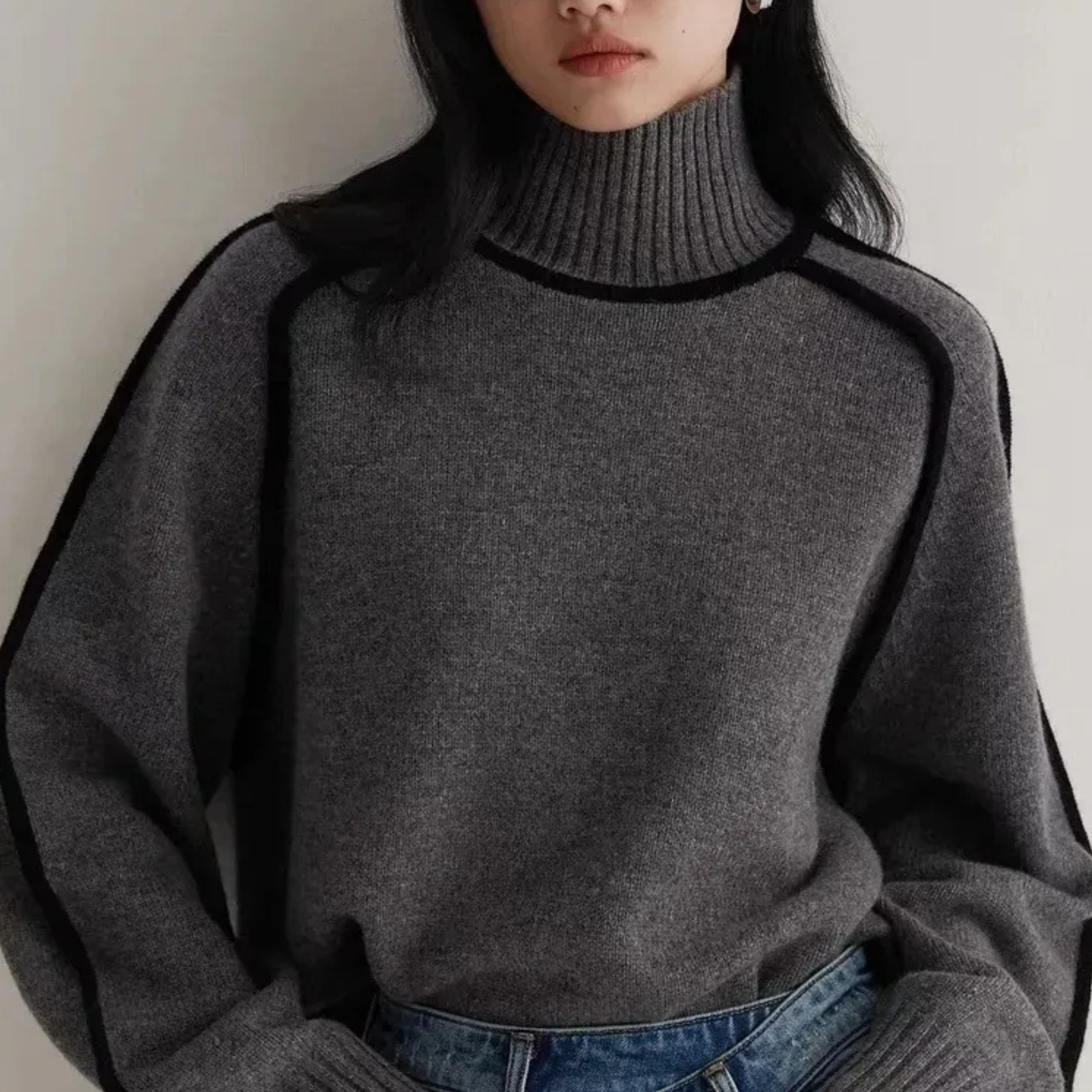 De Frida-trui combineert tijdloze eenvoud met een moderne, Scandinavische uitstraling. Het minimalistische ontwerp wordt benadrukt door strakke lijnen en subtiele contrasterende details die de trui een elegante en onderscheidende uitstraling geven. De hoge kraag zorgt voor zowel warmte als stijl en maakt Frida een natuurlijke keuze voor het hele seizoen.